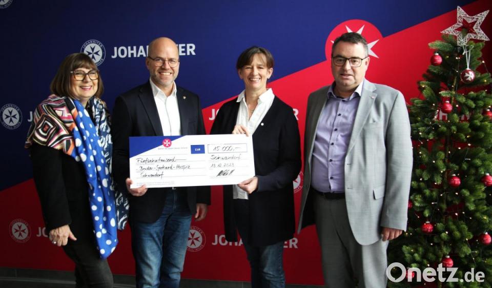 Past-Präsident Michael Mieschala überreichte nun laut einer Mitteilung den symbolischen Spendenscheck über 15.000 Euro in der Regionalgeschäftsstelle der Johanniter an Martin Steinkirchner. Dieser dankte den Spendern und nahm den Scheck im Beisein von Sabine Sudler, Sachgebietsleitung Hospize bei den Johannitern, und Gisela Pöhler, Vorsitzende des Hospizvereins Schwandorf Stadt und Land, entgegen.