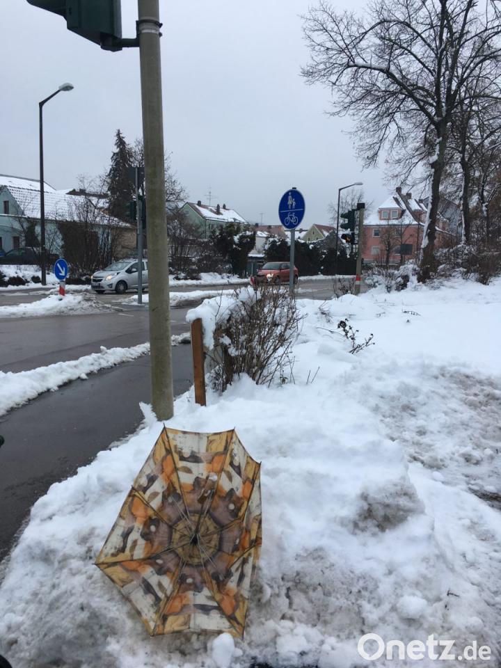 Es mag ärgerlich sein, wenn schirm kaputt geht und der Besitzer schutzlos Wind und Wetter ausgesetzt ist, aber ihn einfach hinzuschmeißen ist nicht die feine enlische Art. Jetzt müssen andere diesen Müll entsorgen, denn nichts anders ist diesr Schirm jetzt. Wer öfters zu fuß im Stadtgebiet unterwegs ist, den fällt auf, dass viele Zeitgenossen ihren Abfall fallen odr leigen lassen, wo sie gerade gehen oder stehen.