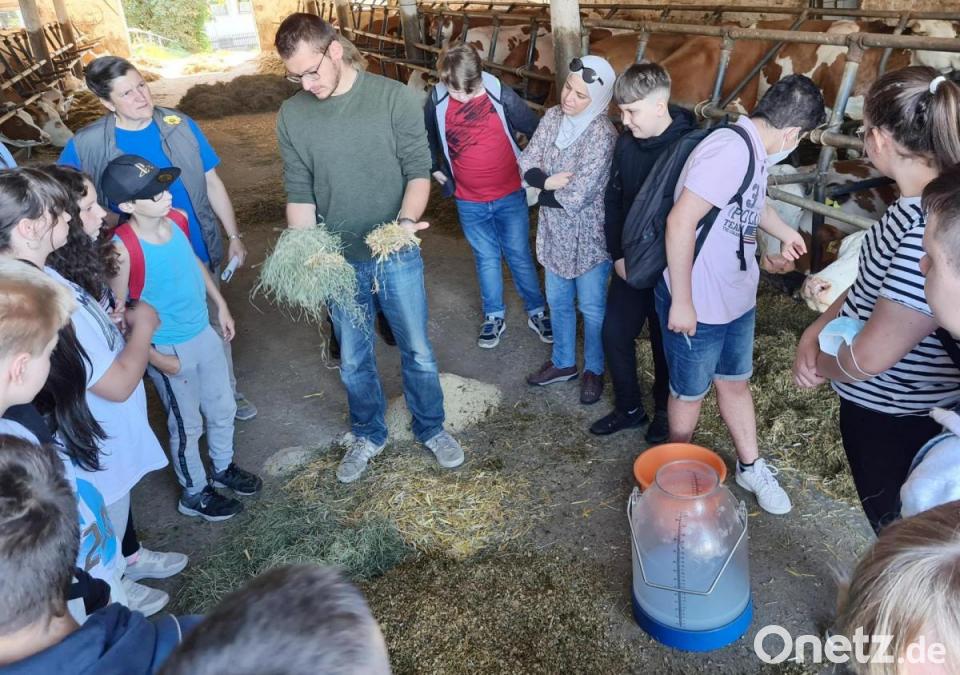 "Gras-Kuh-Milch, wie geht das?" Mit dieser und vielen anderen Fragen beschäftigen sich zur Zeit einige Klassen des Sonderpädagogischen Förderzentrums Schwandorf (SFZ) im Rahmen der Projektwoche "Schule fürs Leben". Dazu besuchten die Schüler der Jahrgangsstufen 3 bis 5 mit ihren Lehrkräften Franziska Peter, Alexandra Graf, Christine Stangl und der Betreuung den Bauernhof der Familie Josef und Barbara Stangl in Raffach bei Schwarzenfeld. Nach der Aufarbeitung der vielen Fragen, die die Kinder stellten, war das Streicheln der Tiere und sogar das Füttern von Heu mit der Hand die erste Kontaktaufnahme zu den großen Wiederkäuern. Im Melkstand zeigte Bauer Stangl mit der Kuh Tiger, wie man das Euter reinigt und das Melkzeug anlegt. Welche Mengen Futter und Wasser eine Kuh am Tag aufnimmt, wieviel Milch sie gibt, was man daraus macht oder wie das Gras für die ganzjährige Fütterung haltbar gemacht wird, stand ebenso auf dem Programm wie die Erklärung verschiedener Feldfrüchte.