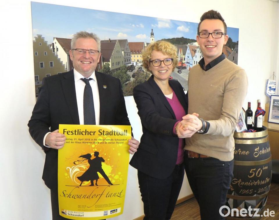 Auch bei der neunten Auflage wird die Klaus-Hörmann-Band die Stadtball-Gäste unter dem Motto "Schwandorf tanzt" durch den Abend begleiten. Die Damen im schicken Abendkleid, die Herren im eleganten Anzug: So werden die Gäste am 25. April um 20 Uhr in der Oberpfalzhalle erwartet. Im Eintrittspreis von 45 Euro sind ein Begrüßungscocktail und ein kaltes und warmes Büfett mit "kulinarischer Überraschung" enthalten, wie der Leiter des Tourismusbüros, Johannes Lohrer, ankündigte. Die Cocktailbar wird wieder in den Konrad-Max-Kunz-Saal verlegt. Dort macht DJ Stefan Theuerl ein eigenes Musikprogramm. Das Hauptgeschehen aber spielt sich in der Oberpfalzhalle ab. "Sie wird eher einem Ballsaal als einer Sportstätte gleichen", verspricht Oberbürgermeister Andreas Feller. Am Montag, 2. März, um 8.30 Uhr beginnt im Tourismusbüro der Kartenvorverkauf. Telefonisch können Tickets ab Dienstag, 3. März, über die Nummer 09431/45550 bestellt werden.
