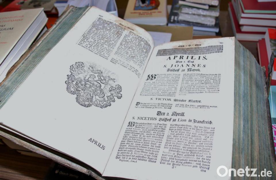Bei einer Besichtigung der Buchbestände wurden unter anderem Enzyklopädien, Biografien, Geschichtsbände und philosophische Abhandlungen in Augenschein genommen. Das angeblich älteste vorhandene Buch – ein Breviarium (ein Gebetbuch des katholischen Klerikers mit Stundengebeten) – wurde 1516 in Mainz gedruckt. Besonders beeindruckend ist eine Lutherbibel aus dem Jahre 1524. Wie man einem Schreiben der Karmeliten aus dem Jahre 1980 entnehmen kann, soll sich in der Klosterbibliothek auch ein (beschädigtes) Heilkräuterbuch aus dem Jahre 1586 befinden.