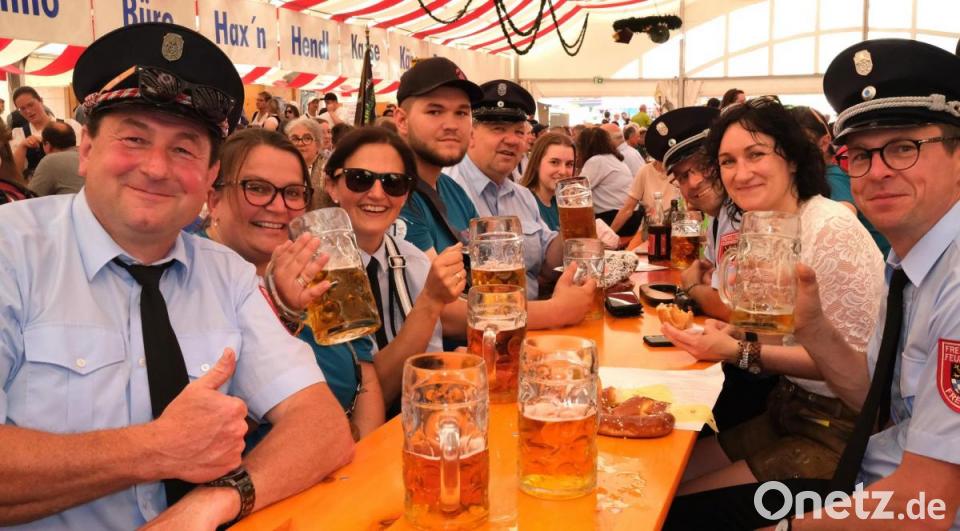 Das 85. Schwandorfer Volksfest erlebte einen Auftakt nach Maß. 1.000 fröhliche Menschen nahmen am Samstag am Festzug durch die Stadt teil und genossen anschließend im Festzelt das Freibier. Die "Neukirchener Blasmusik", die vom 22. bis 24. August das 50-jährige Bestehen feiert, führte den Festzug an, der über die Bahnhof- und Friedrich-Ebert-Straße zum Marktplatz und weiter über die Behelfsbrücke zum Festplatz am Krondorfer Anger zog. Es folgten in Lederhosen die Festdamen der Freiwilligen Feuerwehr Freihöls, die für ihr 125-jähriges Gründungsfest vom 27. bis 29. Juni warben.