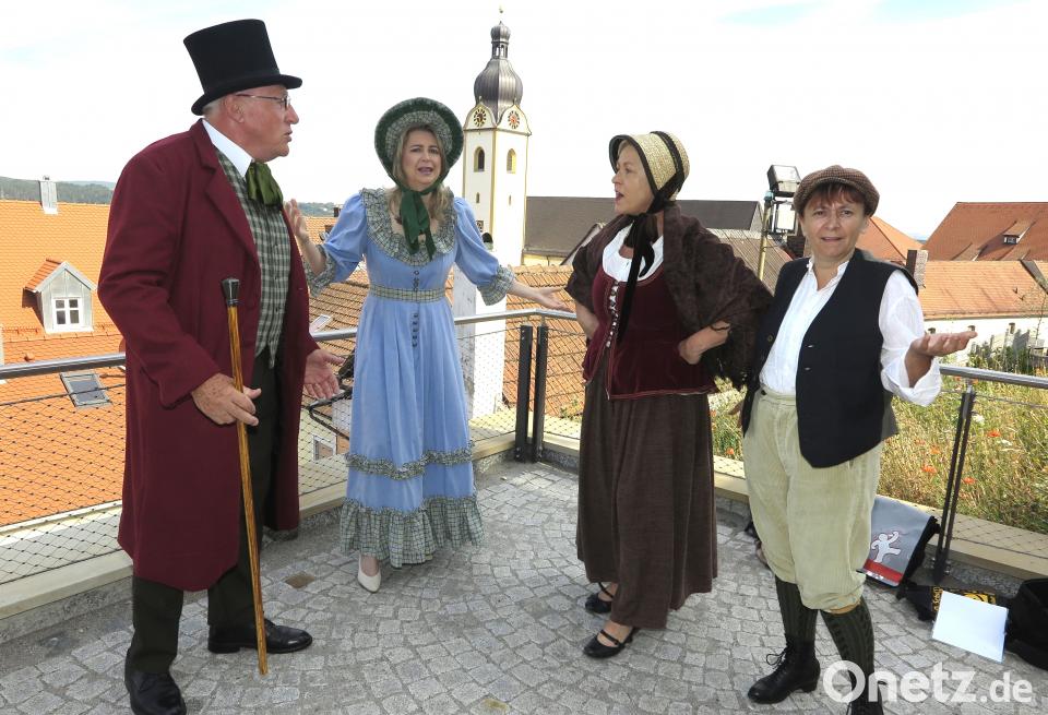 Die Bühne ist das Gelände rund um den Blasturm und das Türmerhaus. Beide Gebäude sind derzeit noch eingerüstet, sollen aber in neuem Glanz erstrahlen, wenn das Schauspiel am Festwochenende viermal zur Aufführung kommt. Das Theater ist Teil des Programms, das die Blasturmglocke und Fanfarenspieler am 3. August um 18 Uhr einläuten werden. Nach der Premiere von "Kunz & Konsorten", an der elf Laiendarsteller der Theaterbühne, der Kolpingsfamilie, des SAD-Theaters und des Stadtarchivs mitwirken, spielt die Fronberger Kirwamusik zünftig auf. Am Samstagnachmittag (4. August) bewirtet der Oberpfälzer Waldverein die Gäste vor dem Türmerhaus mit Kaffee und Kuchen. Um 18 Uhr beginnt eine weitere Theatervorstellung. Anschließend erklingt akustische Gitarrenmusik. Der Sonntag (5. August) beginnt um 9.30 Uhr mit einer "Kunz-Führung" des Tourismusbüros. Zum Mittagessen spielen die Kreuzberg-Musikanten am Türmerhaus-Gelände. Zwischen und nach den Theateraufführungen (15 und 17.30 Uhr) sorgen Christian Rathey mit seiner "Steirischen" und die Gruppe "Bayrisch Böhmisch Blech" für Unterhaltung.