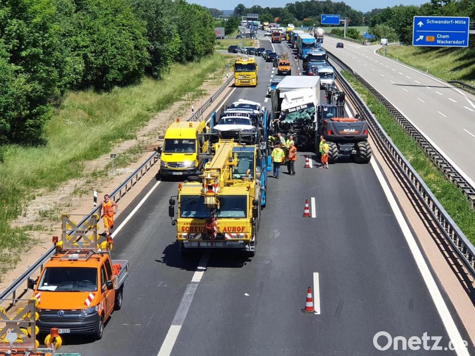 Zur Absicherung und Reinigung der Unfallstelle wurden die Feuerwehr Schwandorf, die Autobahnmeisterei Schwandorf sowie eine Kehrmaschine hinzugezogen. Zudem wurde das Wasserwirtschaftsamt verständigt, da bei der Kollision der rechte Tank der Sattelzugmaschine des Unfallverursachers aufgerissen war, Kraftstoff austrat und in das Erdreich des rechten Grünstreifens einsickerte. Folglich musste das verunreinigte Erdreich ausgebaggert werden.