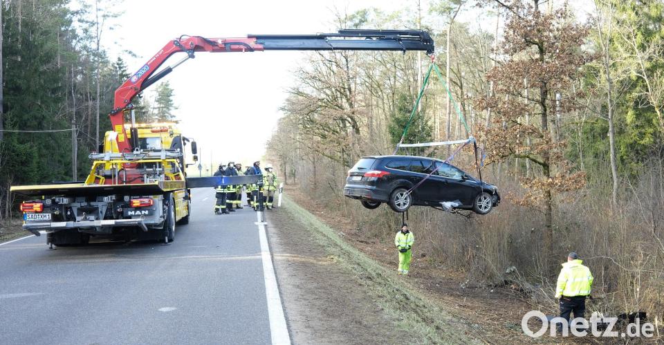 Aktive der Feuerwehren Klardorf, Münchshofen und Bubach befreiten die mittelschwer verletzte Fahrerin aus dem Wrack. Nach der Erstversorgung brachten die Sanitäter die Frau in eine Klinik nach Regensburg. Sie war ansprechbar und gab an, von einem Wildwechsel überrascht worden zu sein und dadurch die Kontrolle über das Fahrzeug verloren zu haben. Der Abschleppdienst hob das beschädigte Auto zum Abtransport über die Böschung. Die Polizei schätzt den Schaden auf 15 000 Euro.