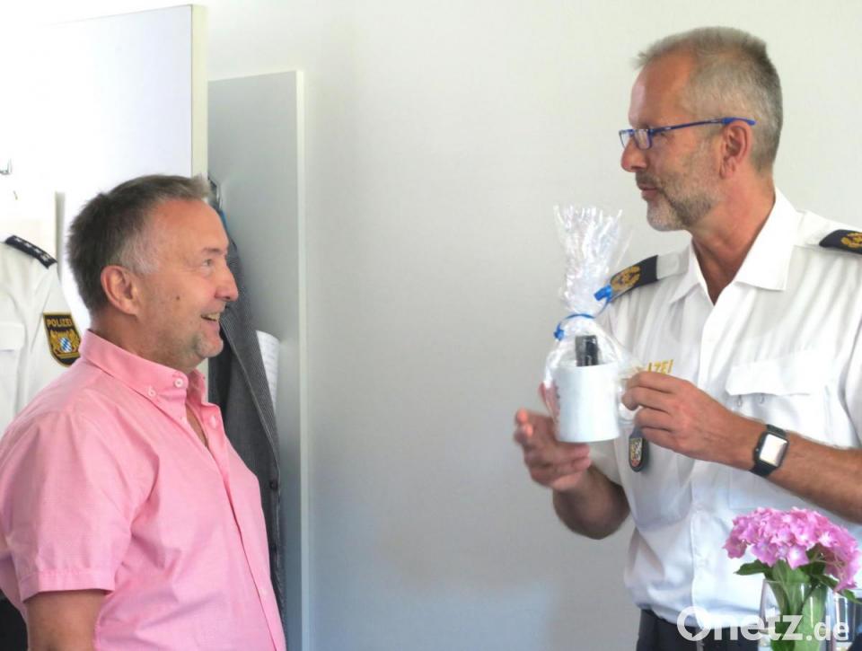 Oberbürgermeister Andreas Feller und Wackersdorfs Bürgermeister Thomas Falter wissen die Polizeiarbeit und die Präsenz der Beamten in der Öffentlichkeit sehr wohl zu schätzen. Stellvertretender Personalratsvorsitzender Franz Eichenseher bedankte sich im Namen der Kollegen bei Walter Bruckner für die loyale Zusammenarbeit und machte dessen Nachfolger Franz-Xaver Michl bewusst: "Du trittst in große Fußstapfen."