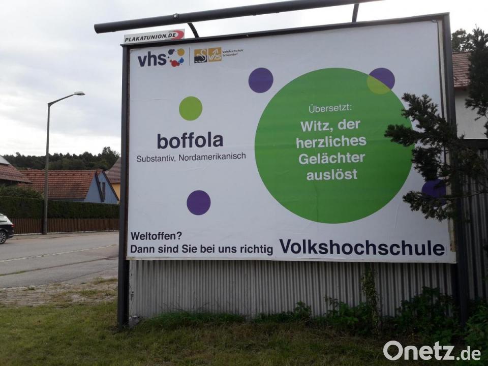 Auch in Schwandorf fällt die aktuelle Großflächenwerbung der bayerischen Volkshochschulen zum Semesterstart ins Auge. Sie steht unter dem Motto "Weltoffen? Dann sind Sie bei uns richtig! Volkshochschule" und wirbt mit einem Augenzwinkern für den kreativen Umgang mit Sprache: Die Übersetzungen der - eigentlich - unübersetzbaren Wörter aus verschiedenen Sprachen wecken Neugierde und Interesse an anderen Kulturen.