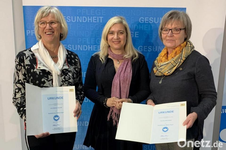 Ausgezeichnet wurden auch Waltraud Ettl und Rosa Niebler (Rieden). Sie setzen sich tatkräftig für Angehörige von psychisch kranken Menschen ein. Begonnen hat laut Ministerin Huml alles damit, dass sie selbst die Gruppe "Angehörige psychisch kranker Menschen" im Schwandorfer Diakoniezentrum besucht haben. Beide seien Mütter von mittlerweile erwachsenen Kindern mit psychischen Erkrankungen. 2009 habe dann die hauptamtliche Gruppenleitung den Dienst bei der Diakonie beendet. Waltraud Ettl und Rosa Niebler hätten damals beschlossen, selbst die Gruppenleitung ehrenamtlich zu übernehmen und die Gruppe unabhängig von der Diakonie weiter zu führen. Dafür wurde dann die Selbsthilfegruppe "Angehörige psychisch kranker Menschen" in Schwandorf gegründet, die sich einmal im Monat trifft.