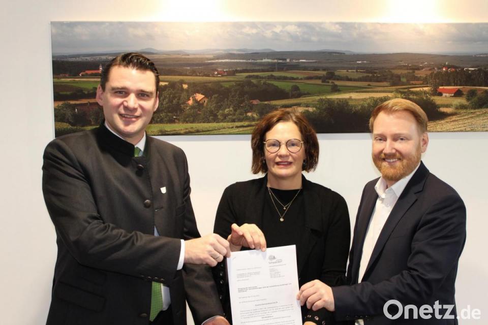 Mit dem "Zukunftsprogramm Geburtshilfe" unterstützt der Freistaat Bayern seine Kommunen, die wohnortnahe Geburtshilfe zu erhalten. Landkreise und kreisfreie Städte im ländlichen Raum, die Defizite kleinerer Geburtshilfestationen ausgleichen, werden finanziell unterstützt. Der Kreistag hatte sich im März 2018 bereiterklärt, das Defizit, das dem Krankenhaus St. Barbara Schwandorf bei der Erbringung stationärer und ambulanter medizinischer Versorgungsleistungen im Fachbereich Geburtshilfe entsteht, auszugleichen. Landrat Thomas Ebeling überreichte nun an den Geschäftsführer des Krankenhauses St. Barbara, Dr. Martin Baumann, im Beisein der Chefärztin Gynäkologie und Geburtshilfe, Dr. Susanne Merl, einen Förderbescheid für 2018 über 563 044,58 Euro.
