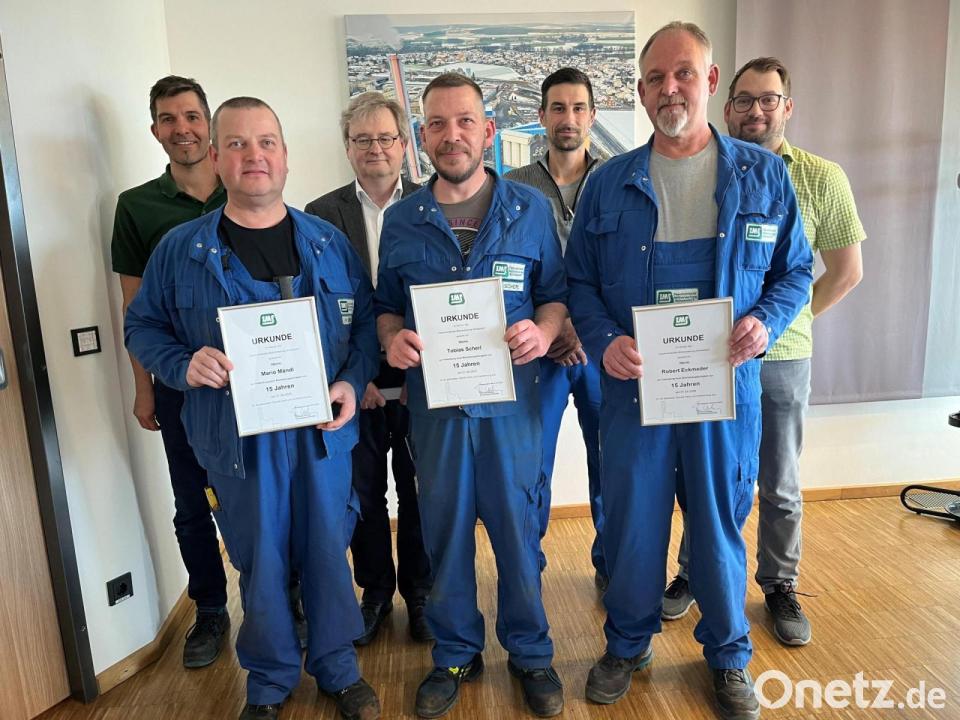 Für ihre 15-jährige Betriebszugehörigkeit wurden Robert Eckmeder, Vorarbeiter für Rauchgasreinigungsanlagen, sowie die Industriemechaniker Mario Mändl und Tobias Scherl ausgezeichnet. ZMS-Verbandsdirektor Knoll und Vertreter der zuständigen Abteilungen würdigten die beruflichen Werdegänge der Jubilare und sprachen Glückwünsche aus. Langjährige Betriebstreue stehe für Kontinuität, Erfahrung und Identifikation mit dem Betrieb, sagte Knoll. Die Geehrten erhielten neben einer Dankurkunde auch die üblichen Jubiläumszuwendungen.