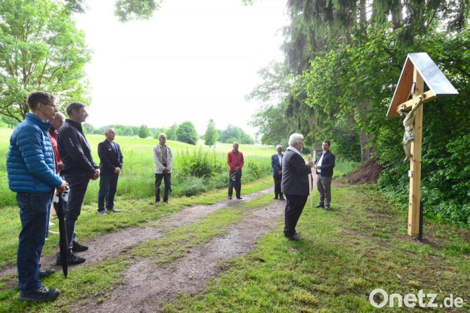 Pfarrer Arnold Pirner nannte das Kreuz einen „Ort zum Verweilen und zum intensiven Nachdenken über das eigene Leben“. Im Gebet erbat der Geistliche den Segen Gottes für das neue Kreuz.
