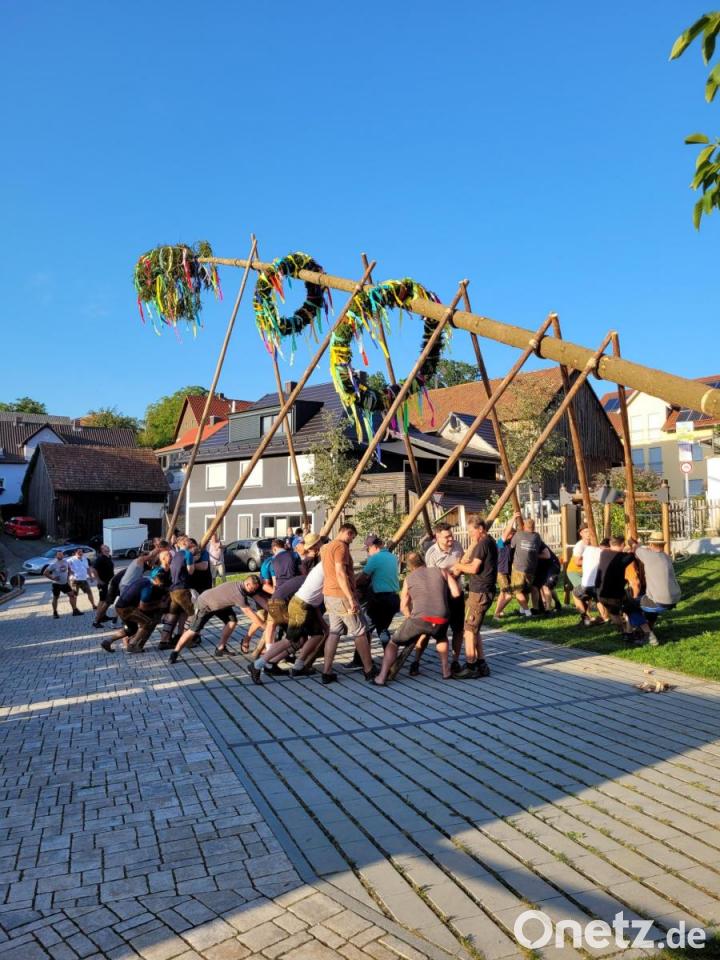 Los ging die Altfalterer Kirwa am Samstagnachmittag mit dem Aufstellen des Kirwabaumes durch zahlreiche Helfer aus Altfalter und Umgebung. Unter dem Kommando von Manfred Bauer und vor den Augen interessierter Gäste wurde der 25 Meter hohe Baum hoch gehievt. Danach ging es nahtlos im Stadel mit der Partyband "Stoasberger Lumpen" weiter.