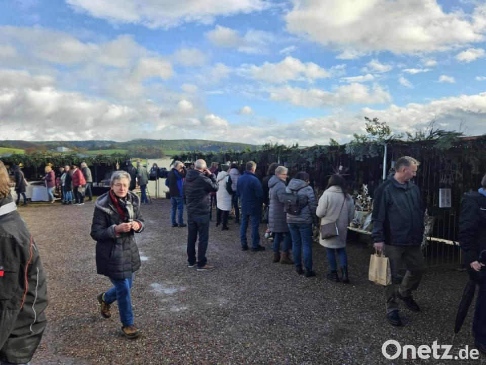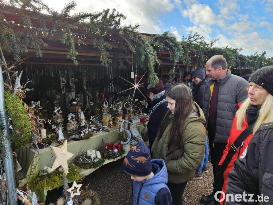 Besucher stöbern beim Hüttenzauber in Weiding nach Weihnachtsdeko