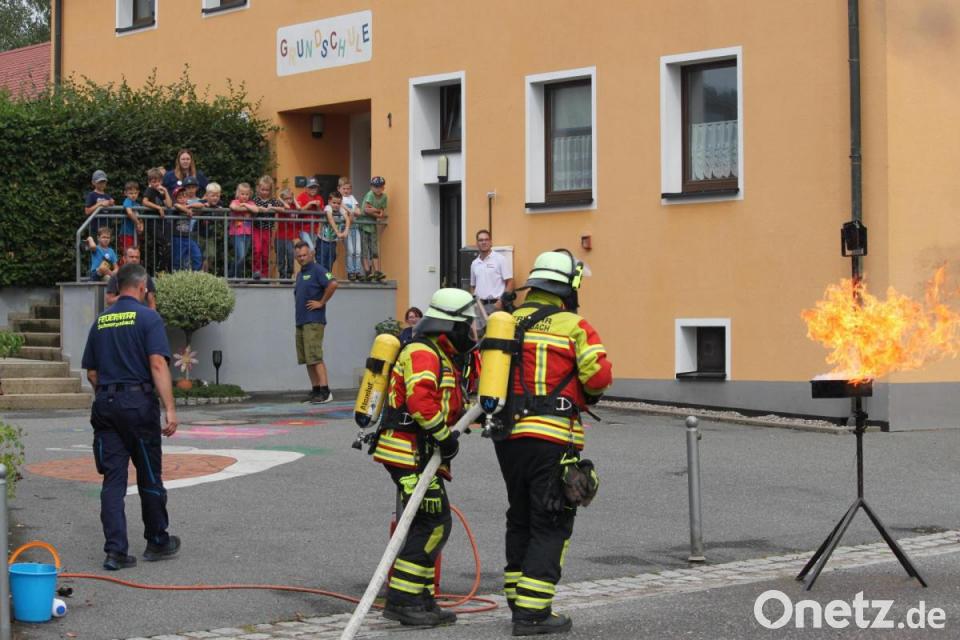Als letzter Programmpunkt wurde ein Fettbrand simuliert. Die Kinder staunten nicht schlecht, was passiert, wenn man fälschlicherweise versucht, brennendes Fett mit Wasser zu löschen. Die anschließende Einsatzübung der Feuerwehrler, bei der auch der HVO (Helfer vor Ort) Pressath tatkräftig mitwirkte, machte den Tag für die Kleinen unvergesslich. Als Höhepunkt wurde jedes Kind mit dem Feuerwehrfahrzeug nach Hause gebracht. Ein Dank galt der Gemeinde Schwarzenbach, die diese Ferienaktion finanziell mit unterstützte.