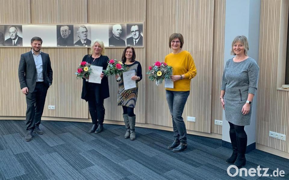 Bürgermeister Peter Neumeier lud zu einer besonderen Feierstunde in kleinem Kreis in den Sitzungssaal des Rathauses ein: Mit Andrea Hasenkopf, Iris Zinkl und Sabine König konnten gleich drei Mitarbeiterinnen des gemeindlichen Kindergartens Villa Kunterbunt zu ihrem 25-jährigen Dienstjubiläum beglückwünscht werden. Neumeier ließ es sich nicht nehmen, gemeinsam mit den Anwesenden einen launigen Blick in die jeweiligen Personalakten samt Bewerbungsfotos zu werfen, bevor er Urkunden und Blumensträuße überreichte. Auch aus dem Beschluss des Hauptverwaltungsausschusses aus dem Jahr 1997 unter Bürgermeister Josef Meier las er vor. Alle drei seien damals Mitarbeiterinnen der allerersten Stunden des neu gebauten Kindergartens in der Ruit gewesen, Sabine König leitete diesen in der Folge rund 23 Jahre. "Es ist euer und im Besonderen dein Verdienst, Sabine, dass die Villa Kunterbunt heute so gut dasteht und bei den Eltern so geschätzt und beliebt ist", fügte Neumeier an. Im Kindergarten wurden die Jubilarinnen von Kindern, Kolleginnen und Elternbeirat mit Luftballons, Blumen und Geschenken überrascht.