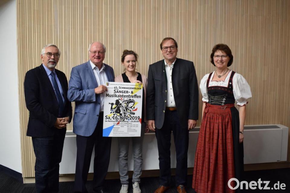 Als Präsident des Oberpfälzer Kulturbundes hat Altlandrat Volker Liedtke dazu den Hausherrn Bürgermeister Manfred Rodde, OKB-Geschäftsführerin Christina Scharinger, als lokale Volksmusikgröße Marita Lobenhofer und den Cheforganisator Sepp Meindl in den Sitzungssaal des Rathauses nach Schwarzenfeld eingeladen. Besonders freut es das Organisationsteam, dass die Crème de la Crème bodenständiger Volksmusik ihr Mitwirken zugesagt hat. Als Gäste aus Oberfranken spielen die "Ponader Boum" zum Tanz auf. Mit ihrer Tanzlmusik begeistern sie seit Jahren das Publikum. Eng verbunden mit dieser Gruppe sind die "Flotten Saiten" aus Nagel im Fichtelgebirge, die virtuos ihre Instrumente zum Klingen bringen. Eine Besonderheit ist die "Amtsstubenmuse" aus Viechtach. Diese fünf Musikanten sind nicht nur Musikerkollegen, sie arbeiten auch zusammen in der zentralen Bußgeldstelle in Viechtach. Mit dabei in dieser musikalischen Runde ist auch das Frauengesangsduo "Wiesa wie" aus der Marktgemeinde Wiesau. Ausgezeichnet mit dem Bayerischen Kulturpreis und dem Ehrenpreis des Zwieseler Fink gehören die "Wolfersdorfer Sänger" zu den ganz Großen der Volksmusikszene. Auch sie werden im großen Saal des Restaurant Miesberg zu hören sein. Ein besonderes Klangerlebnis verspricht die "Vehharfenmusik Weiden". Und als Platzherren spielt die "Blasmusik Schwarzenfeld" zünftig auf.
