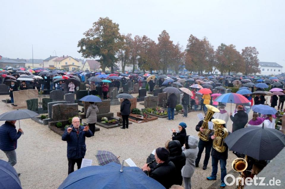 Schwarzenfeld.(mab) Wie hier in Schwarzenfeld, versammeln sich Christen auf allen Friedhöfen am Hochfest Allerheiligen im Gedenken an ihre Angehörigen an geschmückten Gräbern. Typisches „Allerheiligenwetter“ prägte diesen trüben Tag. Die Gräbersegnung, die eigentlich am darauffolgenden Tag, an Allerseelen, ihre Berechtigung hat, wird aufgrund dieses „Stillen Feiertages“ in fünf deutschen, überwiegend katholischen Bundesländern am 1. November begangen. An die Vergänglichkeit allen irdischen Daseins erinnert die Zeremonie der Grabbesuche. Dabei soll auch der Heiligen der Kirche, aber insbesondere auch der vielen ungenannten „Heiligen der Gegenwart“, die etwa ihren aufopferungsvollen Dienst in Alten- und Pflegeheimen mit Krankenhäusern leisten, gedacht und gedankt sein.
