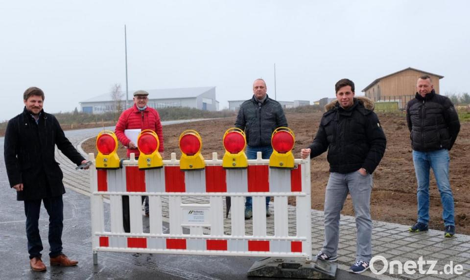 Mit der Verlängerung und dem Ausbau der Hertzstraße im Gewerbegebiet West, bekommt das Areal, auf dem bald die Feuerwehr-Atemschutzstrecke mit Werkstatt entsteht, eine großzügige Zufahrt. Als „sensationell kurz“ empfand Bürgermeister Peter Neumeier bei der Eröffnung und Abnahme die Dauer der Bauarbeiten durch die Firma Seebauer auf der etwa 130 Meter langen Erschließungsstraße bis zum etwa 13 000 Quadratmeter großen, gemeindlichen Baugrundstück.