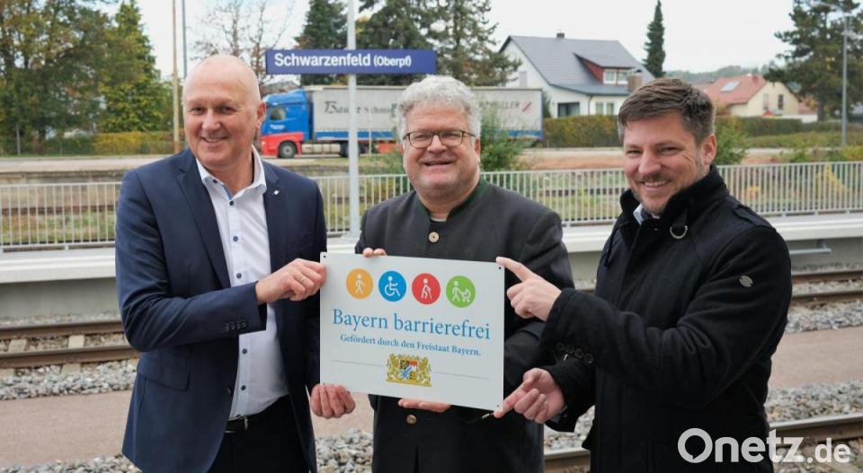 Von den 1100 Bahnstationen in Bayern sind 500 barrierefrei. "Wir haben also noch viel zu tun", betont Stefan Schell. Der Ministerialrat im Ministerium für Wohnen, Bauen und Verkehr überreichte das Signet "Bayern barrierefrei" und betonte, dass die Bahnsteige in Schwarzenfeld bereits vorgerüstet seien für eine spätere Elektrifizierung.