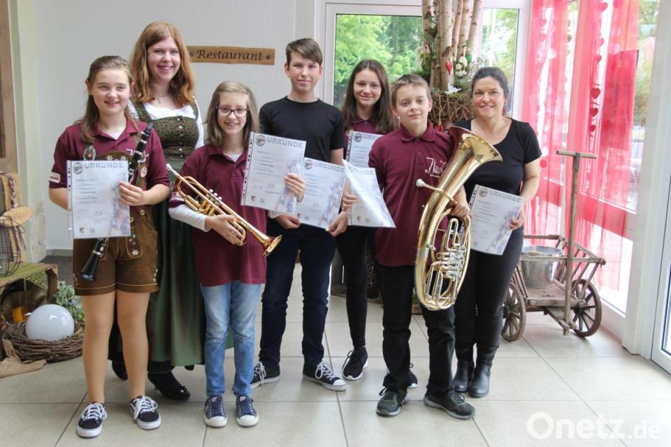 Die Verantwortlichen der Blaskapelle Schwarzenfeld nutzten die Gelegenheit, den jungen Musikerinnen und Musikern die Urkunden für ihre Leistungsabzeichen in Bronze D1 zu übergeben. Die Prüfung bestanden Lena Radlsteiner, Lea Wilfahrt, Leonie Gsödl, Florian Spießl, Lucia Schanderl, Moritz Weber und Diana Weber.