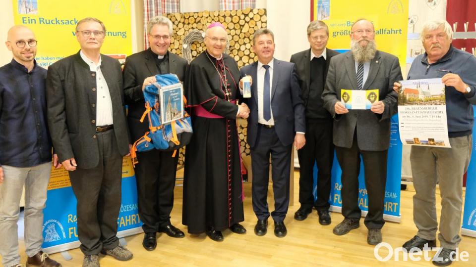 Zur Hauptversammlung trafen sich die Mitglieder des Pilgervereins "Regensburger Diözesanfußwallfahrt nach Altötting" traditionsgemäß in Schwarzenfeld. Der Veranstaltung vorausgegangen war ein feierlicher Gottesdienst, der von Diözesanbischof Rudolf Voderholzer zelebriert wurde. Geistlicher Beirat und Konzelebrant Pfarrer Hannes Lorenz hieß den Bischof nicht nur als Ehrengast, sondern auch als neues Vereinsmitglied willkommen. Die Besonderheit dabei ist, dass der Bischof in den knapp 200 Jahren der Wallfahrt als erster Diözesanbischof die Kriterien, nämlich fünfmal aktiv an der Wallfahrt teilgenommen zu haben, erfüllt hat. "Schön, dass es wieder los geht", sprach Lorenz den zahlreichen Pilgern in der Wallfahrtskirche auf dem Miesberg in Bezug auf den näher kommenden Wallfahrertermin aus dem Herzen.
