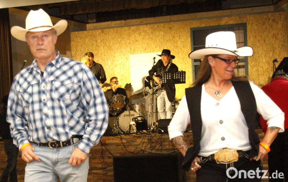 Zu ihnen gehörte auch Elke Hoyer aus Arrach, die ihrem Idol nicht nur nachreist, sondern auch Werbung für ihn macht – auf ihrem Truck. Mit auf der Bühne standen auch Sängerin Ramona Lippert und die Band „Road Pilots“. Die Musiker begeisterten die Fans mit ihrem rockigen Country-Sound und ermunterten sie zum Line-Dance.