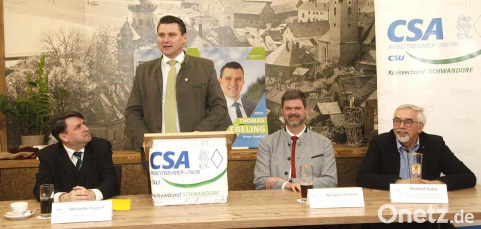CSA-Kreisvorsitzender Alexander Pangerl sah bei der Veranstaltung in der MiesbergGaststätte für den Wähler keinen Grund, die Pferde zu wechseln. Im Gegenteil: Dem Landkreis Schwandorf und dem Markt Schwarzenfeld bekomme die CSU-Regentschaft ganz gut. Dieser Meinung ist auch CSU-Bürgermeisterkandidat Wolfang Prebeck. Er nennt vier Schwerpunkte, die ihm für die Entwicklung seiner Heimatgemeinde Schwarzenfeld wichtig sind. Ihm geht es um Bürgernähe, wenn er sagt: "Wir müssen die Bewohner mitnehmen bei den Entscheidungen und gemeinsam mit ihnen nach tragfähigen Lösungen suchen". Der 46-jährige Studiendirektor will das ehrenamtliche Engagement stärken und damit das öffentliche Leben in der Marktgemeinde fördern. Ihm liegt auch die Generationengerechtigkeit am Herzen. Die Gemeinde müsse Bauland für junge Familien schaffen und sich um eine hohe Aufenthaltsqualität bemühen. Dazu seien Investitionen in die Infrastruktur erforderlich. Wolfgang Prebeck will das Bahnhofsgelände ertüchtigen und damit die Qualität des öffentlichen Personennahverkehrs erhöhen.