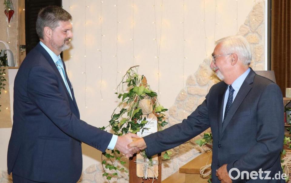 Am Ende gab es Applaus der Gäste für Manfred Rodde und ein Geschenk, das CSU-Vorsitzender und Marktrat Wolfgang Prebeck und Gerhard Peter überreichten.