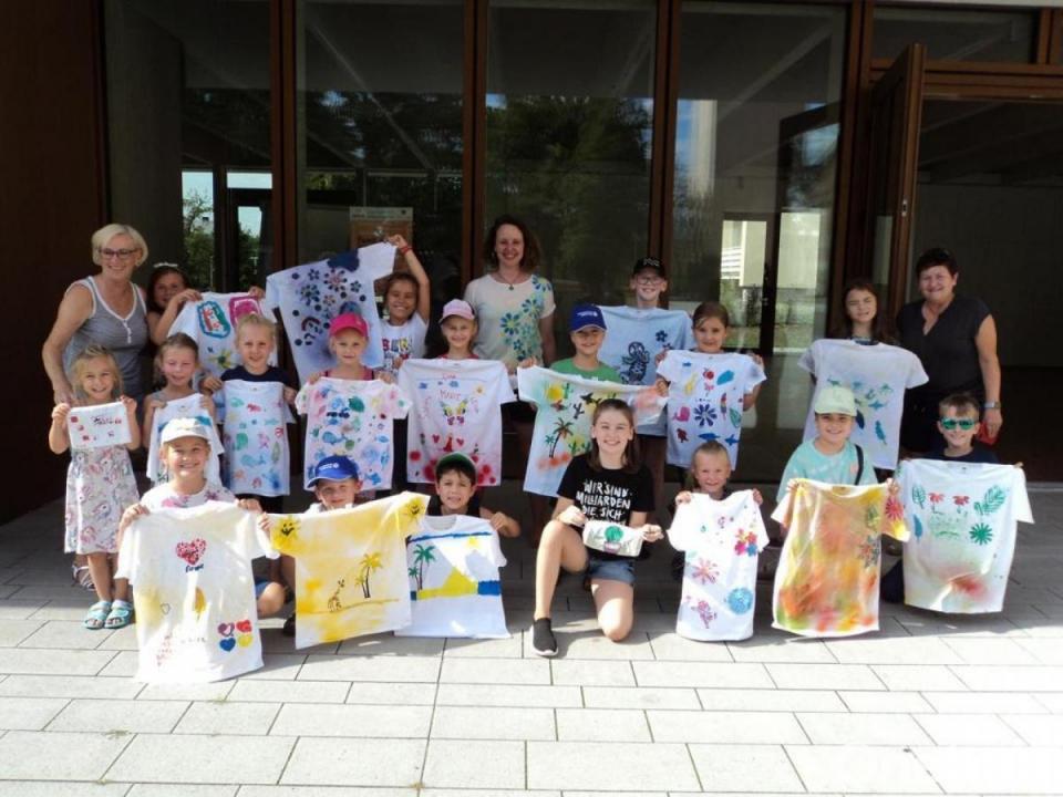Der Katholische Frauenbund Schwarzenfeld bot heuer zum dritten Mal, im Rahmen des Ferienangebots der Gemeinde Schwarzenfeld für Kinder von acht bis zwölf Jahren einen Gestaltungsnachmittag an. Dieses Jahr hatten die Kinder die Möglichkeit, weiße T-Shirts und andere Gegenstände, wie Schlampermäppchen und kleine Taschen zu Bedrucken.