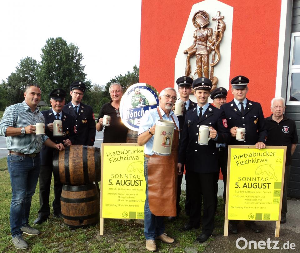 Die Pretzabrucker "Fischkirwa" findet am Sonntag, 5. August, statt. Mit der Bierprobe laufen schon die ersten Vorbereitungen auf Hochtouren. Zu den versammelten Feuerwehrkameraden mit Festleiter Josef Obendorfer war auch Bürgermeister Manfred Rodde gekommen, um das Fass "Hell" anzuzapfen. Nach dem Spruch "Die Krüge hoch" stießen die Veranstalter mit der ersten Halbe auf ein gutes Gelingen an. Es bestand die einhellige Meinung, dass das Mönchshof-Lager-Bier mit 4,9 Prozent Alkohol seinen Test bestanden hatte. Gebietsleiter Martin Gradwohl übernahm das Einschenken. Die Feuerwehrkameraden bereiteten eine zünftige Brotzeit vor. Herbert Goldschadt und Gebietsleiter Martin Gradwohl aus Teunz bei Oberviechtach versprachen einem reibungslosen Ablauf, so dass die durstigen Kehlen gewiss gelöscht werden.