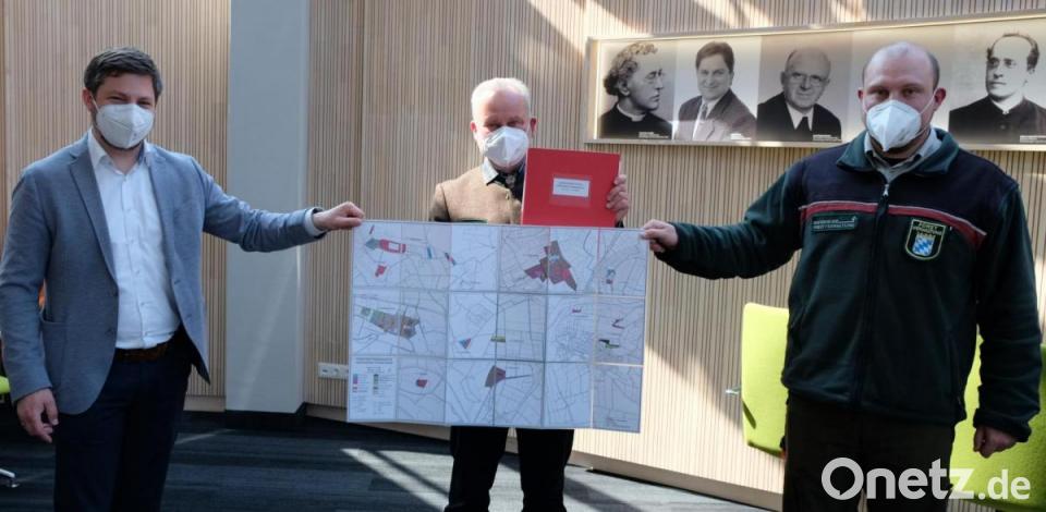 Forstdirektor Alwin Kleber und Revierleiter Thomas Hebauer sind zum Antrittsbesuch im Rathaus und haben Aufschlussreiches dabei. Mit 36 Hektar Waldfläche, die sich im Gemeindeeigentum des Marktes Schwarzenfeld befindet, gehört die Kommune sicherlich nicht zu den großen Waldbesitzern. Dennoch nehmen Forstdirektor Alwin Kleber vom Amt für Ernährung, Landwirtschaft und Forsten im Landkreis Schwandorf und der erst kürzlich ernannte Revierleiter Thomas Hebauer die Möglichkeit wahr, bei einem ersten Treffen mit Bürgermeister Peter Neumeier sich vorzustellen und dabei den neuen Forstwirtschaftsplan für die Region zu übergeben. Ein umfangreiches Werk, das die forstlichen Maßnahmen der nächsten zwanzig Jahre vorgibt. Die vom Forstsachverständigen Michael Graf erstellte Auswertung regelt die Bewirtschaftung der Waldflächen mit dem Ansinnen einer vorbildlichen Bewirtschaftung nach den Bestimmungen des Bayerischen Waldgesetzes.