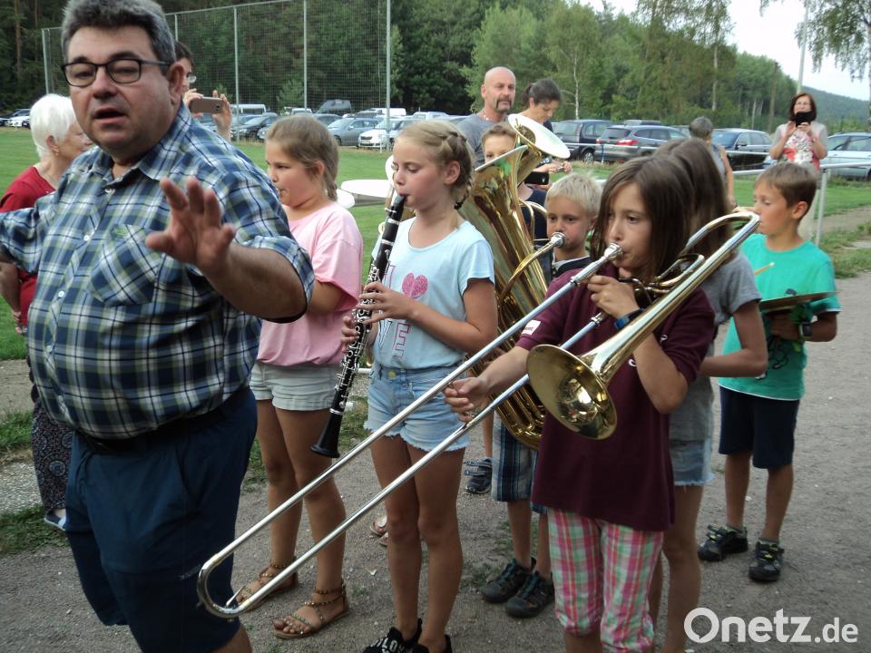 Das fünfte Mal in Folge schlug die Jugendblaskapelle Schwarzenfeld ihr Zeltlager auf dem Sportplatz des SV Trisching/Rottendorf auf. "Hotel Mama" wurde mit Zelt getauscht und auf Feldbetten genächtigt. In vier großformatigen Zelten campen die 46 jungen Musiker fünf Tage lang. Spiel und Spaß und feste Probenstunden zum Einüben von Musikstücken gehören zum Tagesablauf. Verköstigt werden alle von Susanne Lindner und Birgit Gottsauner mit abwechslungsreichen Mittagessen aus der Feldküche. "Jedes Zeltlager ist ein Fest", begrüßte Vorstand Dionys Böckl die Teilnehmer am 33. Zeltlager und freute sich, dass so viele Eltern und Geschwister zum Besuchertag gekommen sind. Der Gottesdienst, zelebriert von Ruhestandspfarrer Johann Schächtl nach dem Leitwort "Gott der Liebhaber des Leben", wurde von der Bläserklasse und dem Großen Blasorchester musikalisch umrahmt. Burkhardt Weber leitete das Orchester beim Einzug mit dem Marsch "Schloss Leuchtenburg". Hernach gab es noch eine Reihe von musikalischen Kostproben. Die Bläserklasse 2018 zeigte musikalisch, was im Zeltlager gelernt wurde. Betreut wurden die Jugendlichen von Andreas Karl, Sophie Ries und Markus Holzinger.