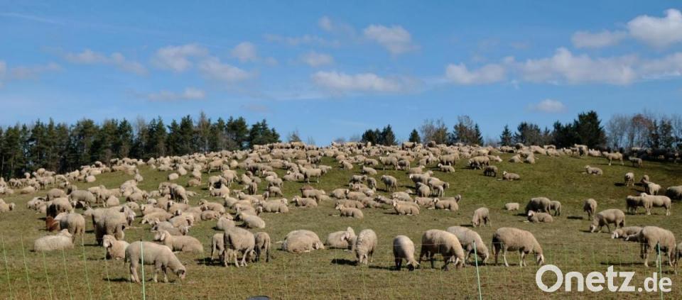 Den geografischen Mittelpunkt der Oberpfalz nahe der früheren Abbaugrube bei Frotzersicht/Schwarzenfeld haben sich Schäfer und Schafherde ausgesucht, um bei frühlinghaften Temperaturen und frischem Wiesengrün zu verweilen. Wie den Menschen, tut auch den weit über 100 Tieren die wärmende Märzensonne sichtlich gut.