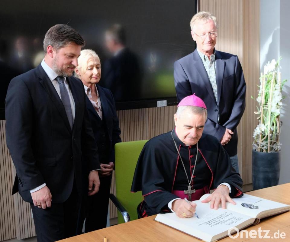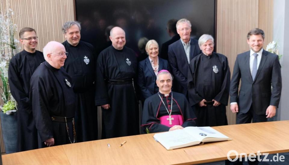 Dem Anlass gebührend hat sich der Apostolische Nuntius in Deutschland, Kurienerzbischof Nikola Eterović, zu Besuch im Kloster Schwarzenfeld eingefunden. Nach dem Empfang auf dem Miesberg trug sich der hochrangige Würdenträger in das Goldene Buch des Marktes im Rathaus ein. Mit anwesend waren dabei die Angehörigen der Passionisten, aber auch die drei Bürgermeister mit den jeweiligen Fraktionsvorsitzenden. Angereist waren aus Rom auch der Generalkonsultor Pater Mirek Lesiecki sowie der Provinzial der polnischen Passonistenprovinz, Lukasz Andrzejewski.