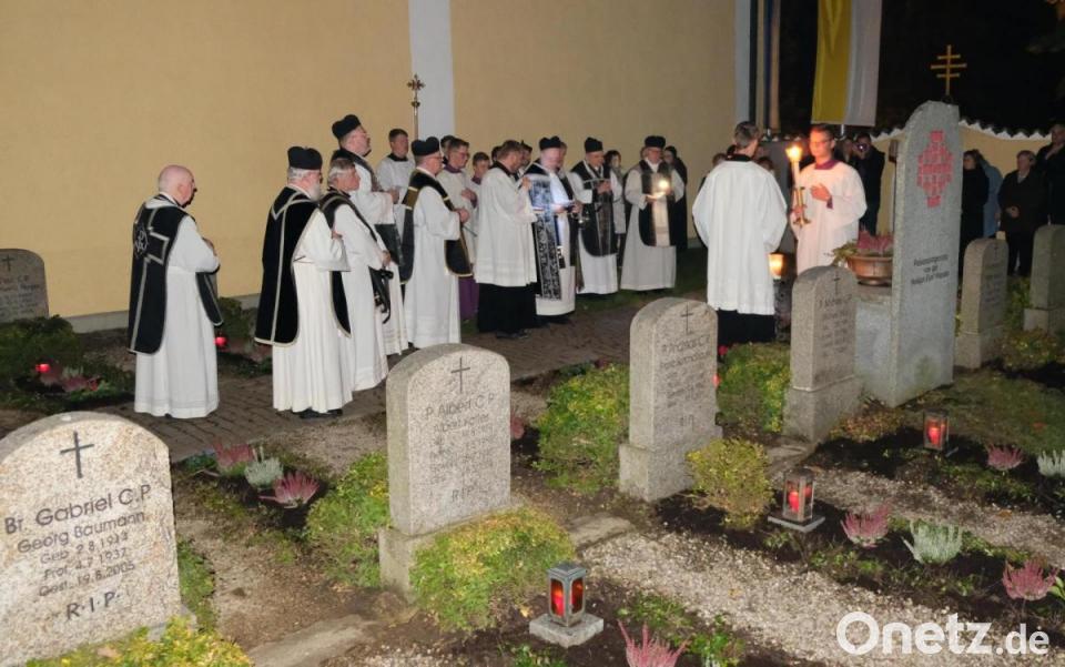 Auf dem Klosterfriedhof, direkt neben der Kirche gelegen, wurden vor dem Gottesdienst die Gräber gesegnet. In eindrucksvoller Stille wurden die Namen von 57 seit Gründung im Jahre 1922 verstorbenen Mitbrüdern verlesen. Die musikalische Gestaltung hatte der Bergchor St. Barbara unter Leitung von Herbert Reger und mit Christian Lehnerer an der Orgel inne.