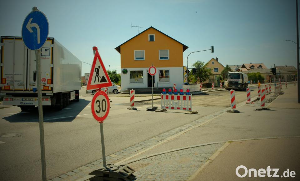 "Wenn das Navi verrückt spielt...", so ließe sich die derzeitige Situation, insbesondere für ortsfremde Verkehrsteilnehmer in Schwarzenfeld beschreiben. Auf Umwegen, wie etwa hier über die Morgenlandstraße und weiter über Deiselkühn, versuchen Autofahrer und auch Männer hinterm Steuer schwerer Lastwägen an ihr Ziel in Richtung oder aus Richtung Amberg zu gelangen. Verständlich, dass sich Staus im Ortszentrum bis hinaus über die Ortsgrenzen bilden. Seit Donnerstag bis voraussichtlich Montagnachmittag, 23. Juli, ist die Staatsstraße gesperrt. Von der Einmündung der Morgenlandstraße bis westlich der Bahnbrücke wird die Fahrbahn asphaltiert. Das soll am Wochenende geschehen. Gestern und heute standen und stehen Vorbereitungsarbeiten wie Fräsen, Reinigen und Aufbringen eines Haftklebers an.