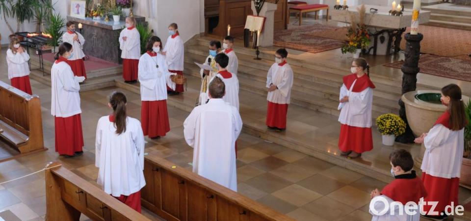 Mädchen im Ministrantendienst am Altar – bis noch vor wenigen Jahrzehnten eine unmögliche Vorstellung. Heute für viele Verantwortliche in den Pfarreien selbstverständlich und willkommen, dass Mädchen – meist ab dem Jahr der Erstkommunion – mit den Buben gemeinsam im Altarraum stehen. Vergangenen Sonntag, am Hochfest Christkönig, waren es von neun „Minis“, die in der Pfarrei Mariä Himmelfahrt in Schwarzenfeld neu in die Gemeinschaft aufgenommen wurden, sechs Mädchen. Derzeit leisten damit 35 Ministranten ihren Dienst in der Pfarrkirche. „Ihr habt euch entschieden für diesen besonderen Dienst am Altar“ konnte sich Gemeindereferent Markus Seefeld über das Mittun des Ministrantennachwuchses freuen. „Jetzt ist die Zeit, jetzt ist die Stunde“ intonierten die Gottesdienstbesucher so passend zum Anlass. Während der Messfeier, die von Pfarrvikar Pater Justine Chakkiath zelebriert wurde, waren die Neuen mit dem äußeren Zeichen ihres Dienstes, mit dem umgehängten Ministrantenkreuz, von der Pfarrfamilie willkommen geheißen worden.