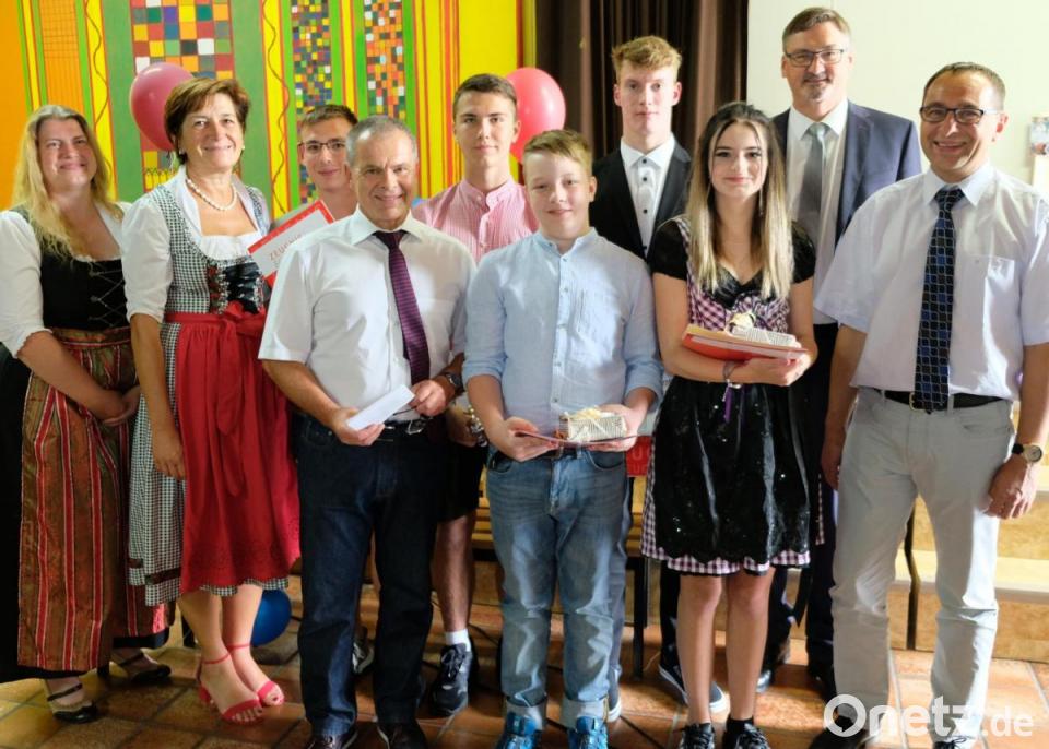 Fünf Schüler konnte sich über eine Eins vor dem Komma im Abschlusszeugnis freuen. VG und Elternbeirat beglückwünschten sie mit einem Geschenk: Alexander Schrott, Sebastian Kulzer, Alexander Kiener, Falco Link und Isabell Schuster gehören zu den Besten des Abschlussklasse.