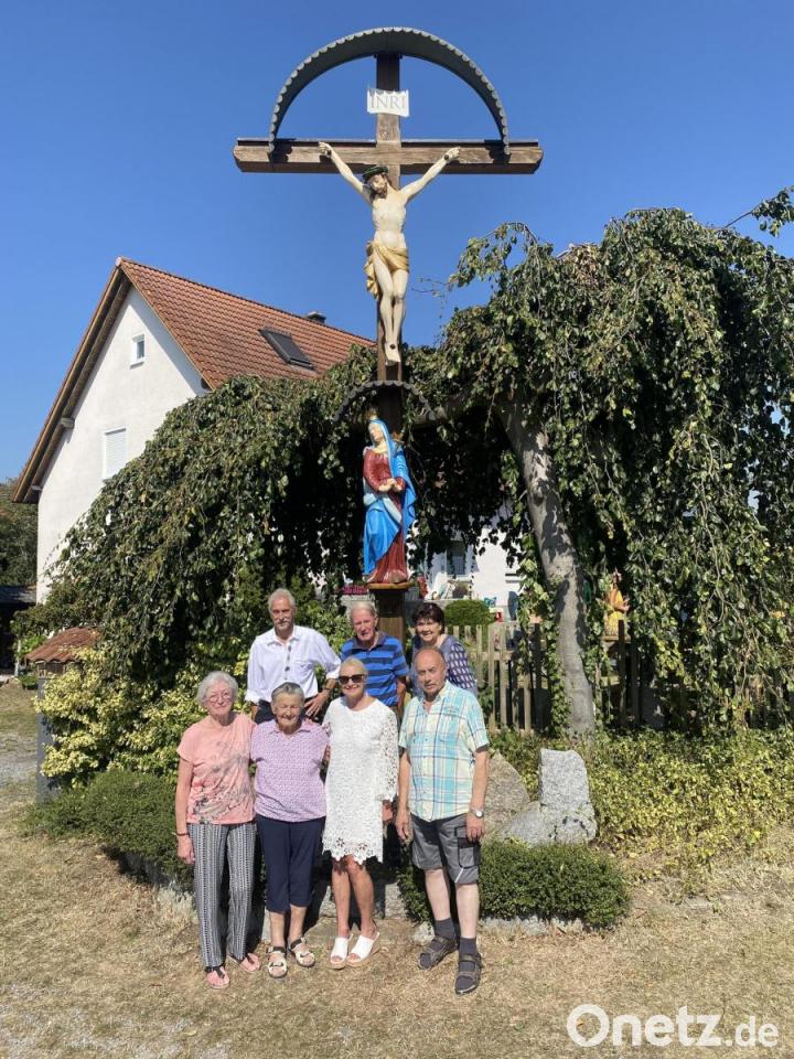 Die beiden Figuren mit der Darstellung des gekreuzigten Christus und Maria wurden vom Malermeister Siegfried Ries aus Schwarzenfeld mit großem Sachverstand liebevoll restauriert. Mit den Familien Kurz und Hochmuth, die sich mit Hingabe um den Erhalt des Gelübde-Kreuzes kümmern, freute sich auch der Heimat- und Verschönerungsverein Schwarzenfeld über die sehr gelungene Restaurierung eines weiteren Kleindenkmals in Schwarzenfeld.