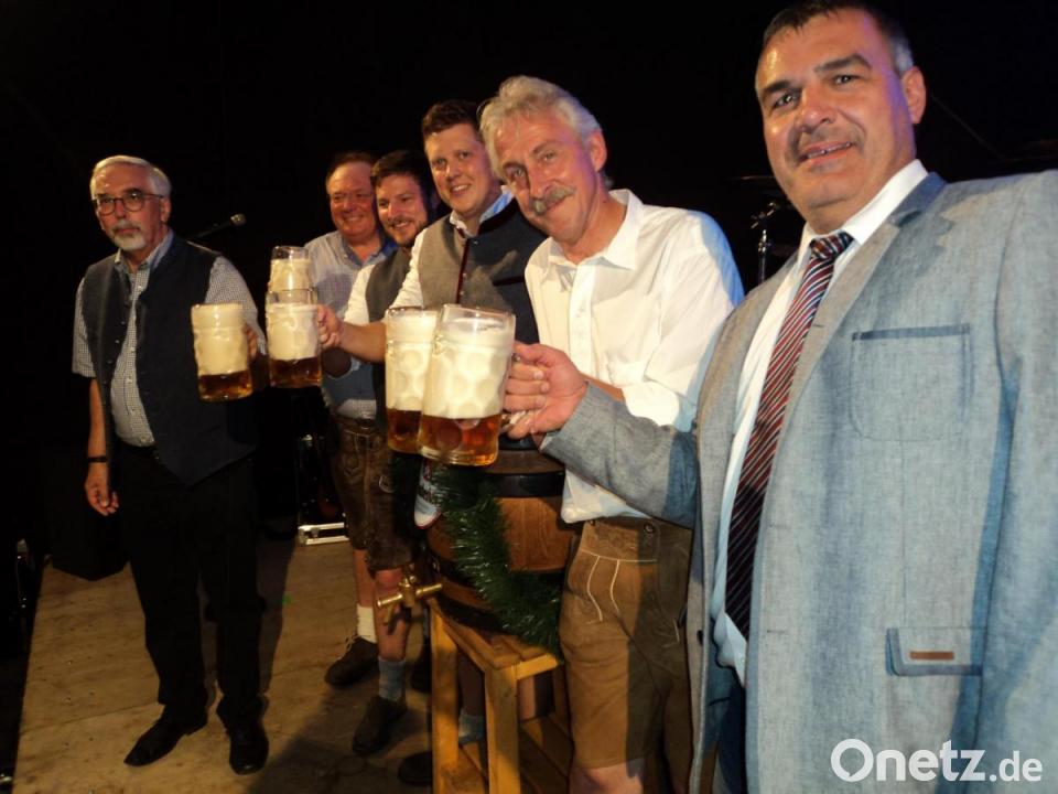 Für Bürgermeister Manfred Rodde dürfte sich in die Feier auch ein Tropfen Abschiedsschmerz gemischt haben, als er zum Anzapfen des ersten Bierfasses antrat. Ein letztes Mal hielt er in dieser Funktion ganz offiziell den Hammer in der Hand und profitierte dabei von seiner langjährigen Erfahrung bei solchen Jobs. Er benötigte nur wenige Schläge und sorgte souverän dafür, dass der Naabecker Gerstensaft fließen konnte. „Ozapft is“ schallte es dann durch das Bierzelt, und die Kapelle spielte „ein Prosit der Gemütlichkeit“. Das Zelt füllte sich langsam, und dank der mitreißenden „Rotzlöffl“ waren bald Dirndl- und Lederhosenträger auf den Tischen und Bänken zu finden.