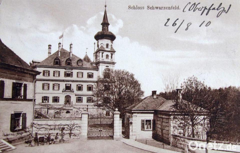 Es gibt eine schöne Postkarte aus dem Jahr 1910, die Martin Irl kürzlich erstanden hat. Sie zeigt vorne eine Aufnahme des Schwarzenfelder Schlosses, vom Haupttor aus gesehen. Diese Karte hat damals Schlossherr von Heintze versandt, Adressat war ein gewisser Graf Franz Montgelas, ein alter Polo-Freund aus dem Fränkischen.