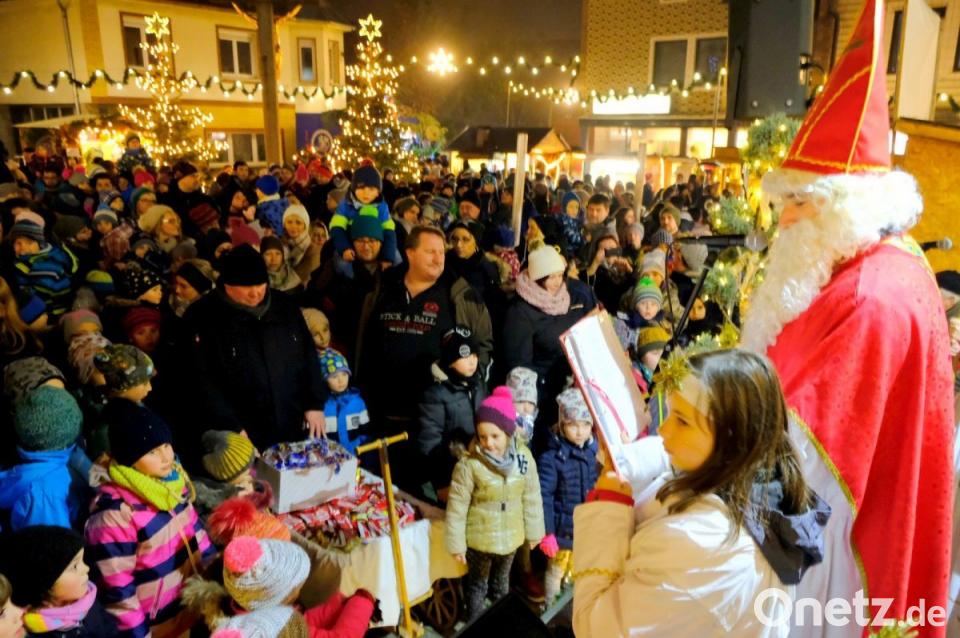 Lag es am Wetter, das zwar ohne Schnee, aber dafür mit erträglichen Temperaturen die Eröffnung begleitete? Oder sollte es das eine oder andere Schnäppchen sein, das zum Besuch am Vormittag relativ viele Schwarzenfelder auf den Platz am Kreuz einlud? Verhalten, wie immer, war der Andrang dann während der Mittagszeit, so dass für die 17 Standlbetreiber bis etwa 15 Uhr Stillstand in der Kasse angesagt war. Durch die Klänge des Nachwuchsorchesters und folgend durch die Formation des evangelischen Posaunenchors kam vorweihnachtliche Atmosphäre auf den festlich geschmückten Platz. Höhepunkt war der Besuch des Nikolaus' mit Engeln und Knecht Rupprecht.
