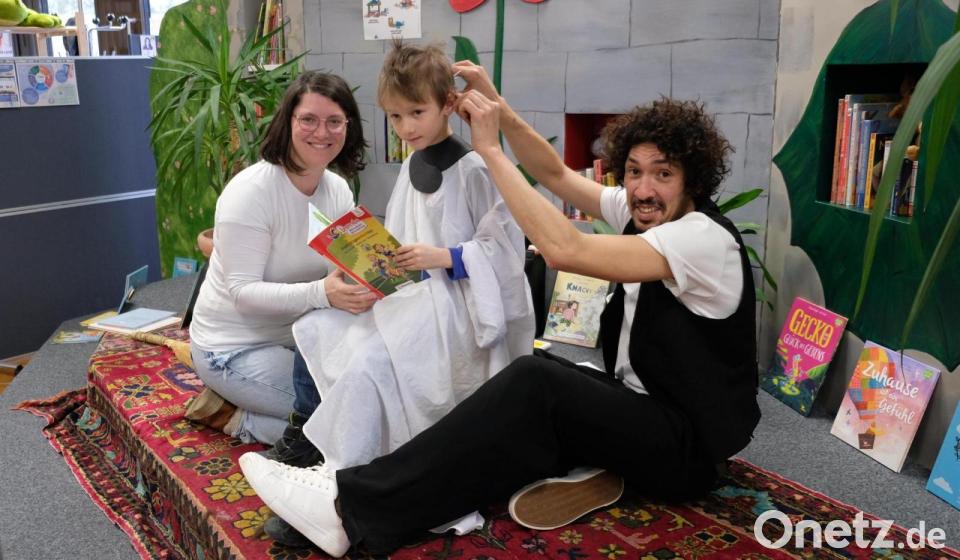 „Mama, ich will zum Friseur ins Rathaus!“ Mit diesem Wunsch sahen sich am Wochenende sicherlich viele Mütter und Väter aus Schwarzenfeld konfrontiert. „Schneiden und lesen“ war in der gemeindlichen Bücherei angesagt, und dieser Aufruf lockte eine ganze Schar von Kindern mit Eltern ins Rathaus. Zu Gast war vom Sonntagvormittag an über fünf Stunden hinweg der „Vorlesefriseur“ Danny Beuerbach. Einmal vorlesen mit einem kostenlosen Haarschnitt, egal ob „Groß, klein oder Senior“, war auf der Einladung zu lesen. Ausgestattet mit einem großen, bunten Teppich als Unterlage, einer gehörigen Portion Spaß und mit dem wichtigsten Instrument, einem Buch zum Vorlesen, hat diesmal die Drachenbühne der Bücherei eine völlig andere Verwendung bekommen. „Schneiden, lesen und lachen“ lautete das Motto. Die Bedingung für einen tadellosen Haarschnitt ist nur das Vorlesen während der professionellen Anwendung durch die kleinen „Kunden“.