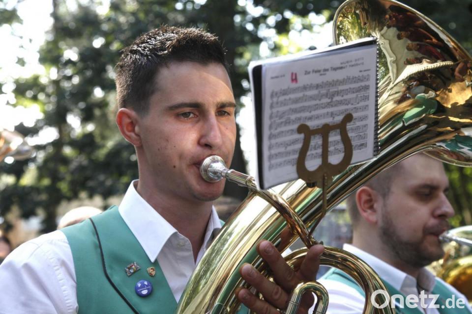 Den Sternmarsch zum Schlosspark eröffnete die gastgebende Musikkapelle mit dem "Schloss-Leuchtenberg-Marsch". 70 Musiker zogen vorbei an der Tribüne und salutierten vor den Ehrengästen. Die Jugendblaskapelle Nabburg rückte mit 32 Leuten nach, angeführt vom Dirigenten Markus Ferstl, der den "Jungbläsermarsch" gewählt hatte.