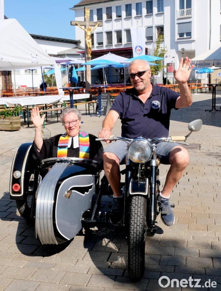 Die oftmals zitierte Schräglage im Leben, die jemand aus der Bahn werfen kann, stellte die evangelische Pfarrerin Heidi Gentzwein in ihrer Predigt beim Motorradgottesdienst einer unvergleichbar romantischen und kurvigen Ausfahrt mit dem Motorrad gegenüber. "Ich will dich loben auf der Straße, im frischen Fahrtwind so lange ich lebe" so eine Passage des Motorradfahrer-Psalm. Gegensätze eben, die zum Leben gehören.