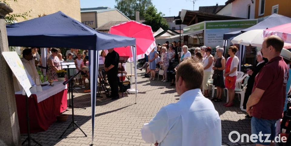 Zu gleicher Zeit ein paar hundert Meter weiter in der Hauptstraße der katholische Gottesdienst im Eckert-Hof, der von Pfarrvikar Sabu Sebastian Valiaparambil zelebriert wurde. Musikalisch begleitet durch einen "Generationenchor", bestehend aus Mitgliedern des Kirchenchores und der Kinderchöre, fanden sich im Frauenbund-Cafe die Gläubigen ein. "Es hätte halt einer frühzeitigen und besseren Abstimmung bedurft", bedauerte es Heidi Gentzwein, dass es keinen großen, gemeinsamen ökumenischen Gottesdienst gegeben hat.