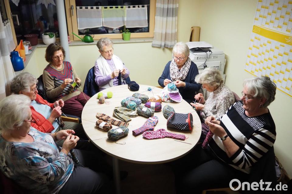 Klar macht bei dieser Tätigkeit über viele Stunden schon mal das Handgelenk schlapp, oder der Halswirbel zwickt. "Aber für mich ist das einfach Entspannung, das hilft mir runter zu kommen, wenn ich mich in der Arbeit recht aufrege", berichtete Angelika Süß. Und die Wolle geht im Strickkreis so schnell nicht aus. Inzwischen wird gleich ein Groß-Paket bestellt, "und einmal hat sogar der Pfarrer zu Woll-Spenden aufgerufen", erzählt Margit Rank, die an einem fast schon neongrünen Bündchen für eine Kindersocke strickt. "Die Socke bekommt dann eine bunt melierte Ferse und Spitze", so der Plan.