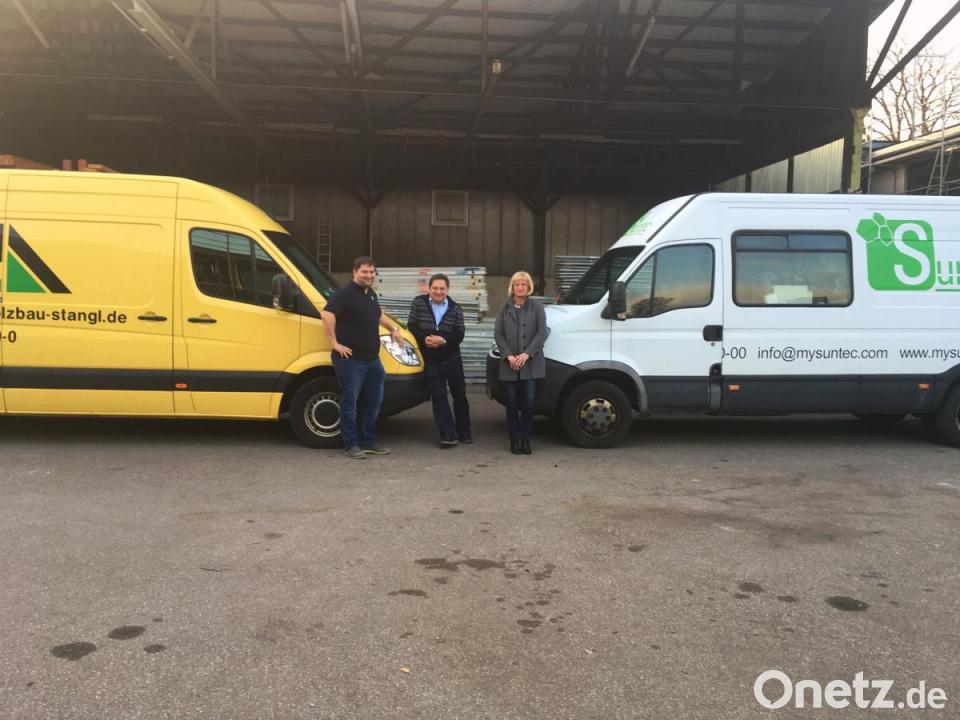 (ihl) Holzbau Stangl wird es auch in Zukunft geben, obwohl die Firma Suntec Eigentümerin des Geländes am Wohlfester Weg 2 ist. Darauf legt Josef Meier besonderen Wert. Seit Jahresbeginn arbeiten aber Holzbau Stangl und Suntec nicht mehr nur Tür an Tür, sondern eng zusammen. Über diesen Schritt informierten Stangl-Geschäftsführerin Petra Stangl, Suntec-Geschäftsführer Wolfgang Meier und dessen Vater Josef Meier. Sichtbares Zeichen ist, dass sämtliche Dachflächen mit Photovoltaik bestückt wurden und werden. 750 Kilowatt Strom liefern die Module jährlich. Das reicht für rund 250 Wohneinheiten.