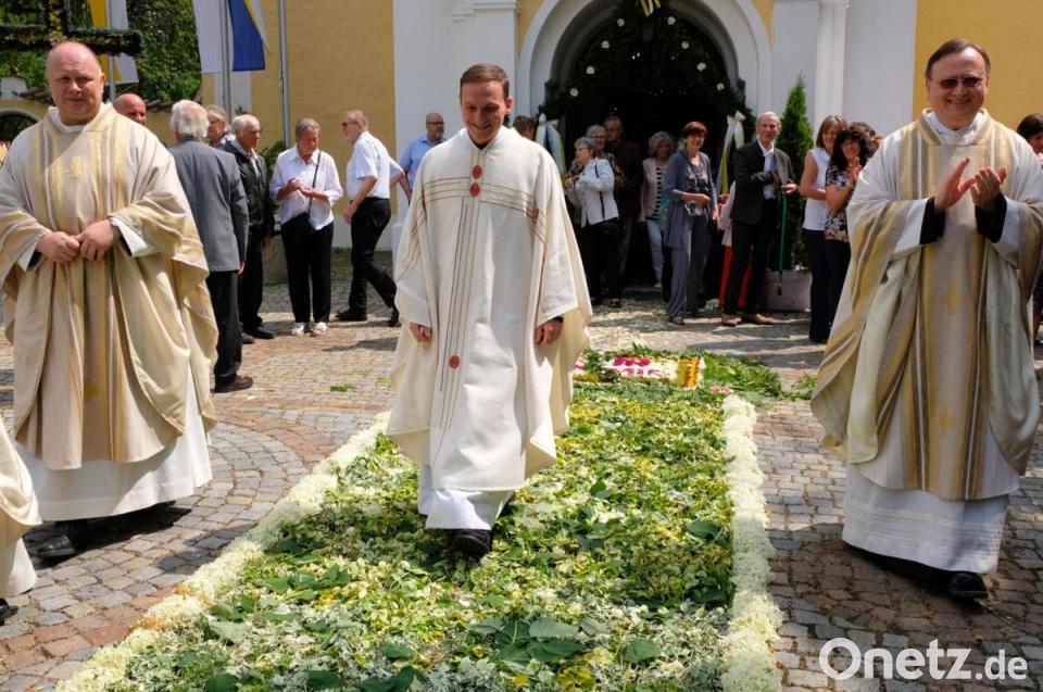 (mab) Pater Dominikus Hartmann feierte in der Klosterkirche auf dem Miesberg einen Tag nach seiner Weihe Primiz. Es war der erste Gottesdienst, den der Neupriester als Hauptzelebrant abhalten durfte. Schon am Vorabend, und im Besonderen am Tag des Festes, herrschte rund um das Kloster Ausnahmezustand. Im Morgengrauen des Primiztages wurden farbenprächtige Blumenteppiche an Ort und Stelle gebracht, die schon die Tage vorher in mühesamer Kleinarbeit von fleißigen Händen gestaltet worden sind. Das Ergebnis: Es führte zu Staunen und Hochachtung bei der Bevölkerung. Freude kam auch bei den vielen Helfer auf, als der Primiziant in Demut, aber auch mit dankbarem Lächeln, beim Kirchenzug den bunten Weg mit zahlreichen christlichen Motiven passierte.
