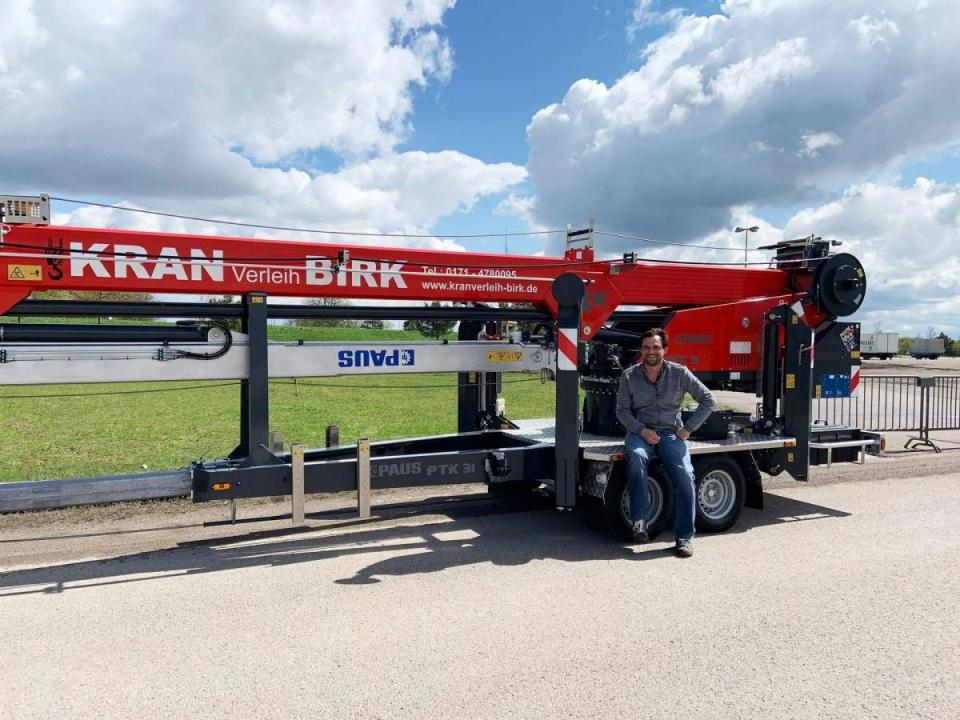 Sebastian Birk hat den ersten Anhängerkran von Paus bereits seit 2018 im Einsatz und damit schon einige Jahre auf dem Prüfstand. Als zur Erweiterung der Kranverleih-Kapazitäten in einen zweiten Kran investiert werden sollte, war die Entscheidung für einen neuen Kran von Paus schnell getroffen. „Die spielend leichte Handhabung des PTK 31, aber auch das Preis-Leistungsverhältnis haben uns einfach überzeugt in einen weiteren Kran der Hermann Paus Maschinenfabrik zu investieren“, so Sebastian Birk von der Kaminbau-Birk GmbH.